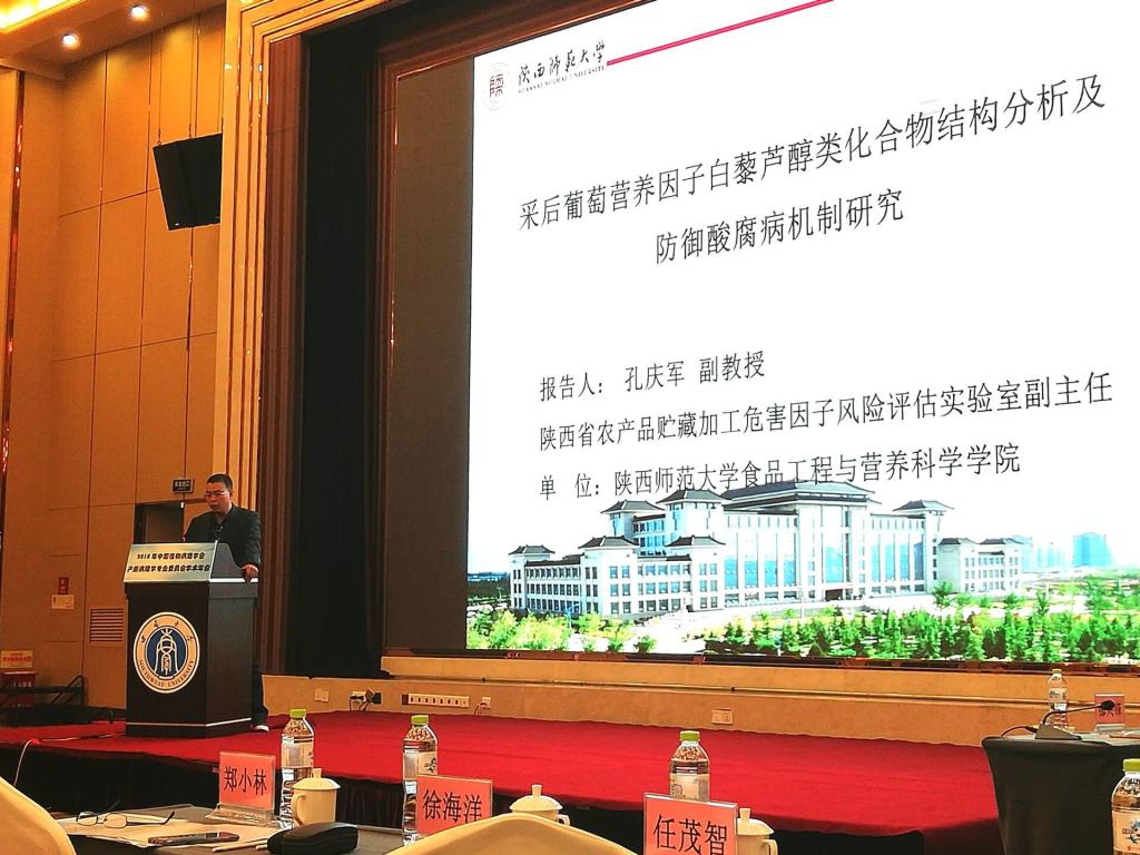 中国植物病理学会产后病理学学术年会主要对果蔬衰老与抗性应答机制及调控技术、 果蔬采后病原菌致病机制及控制技术等方面的问题进行多角度的交流和探索,可为广大同行带来一场高水平、最前沿的学术交流,也为推动我国果蔬采后病理学的研究提供一个交流合作平台。会议开幕式上,大会主席中科院植物研究所田世平教授对产后病原菌的致病性及其调控机制、病原菌与寄主的互作机制、农产品产后的生理病害及调控机制等方面近几年的发展及未来发展的展望进行了整体论述。孔庆军老师在会上作了题为“采后葡萄营养因子白藜芦醇类化合物结构分析及防御酸腐病机制研究”的报告,报告内容主要为采后葡萄品质因子茋类化合物研究意义、采后葡萄品质因子分离及结构鉴定及茋类化合物防御酸腐病机制研究。报告受到参会人员的广泛关注,认为孔老师的研究对酿酒葡萄主要防御因子及采后防御病害机制等方面进行了系统且深入的研究。相关研究成果已在《Food Chemistry》《Food control》等国际SCI收录期刊发表。
